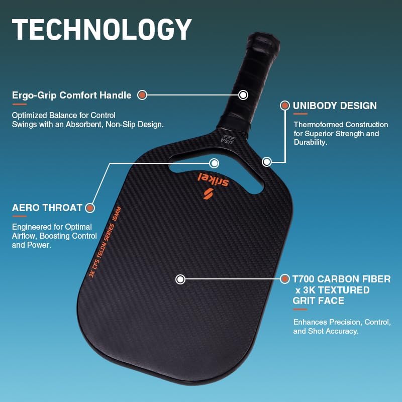 Polymer honeycomb core and thermoformed unibody construction deliver 30% faster energy transfer. USA Pickleball approved for all skill levels, from casual rallies to pro tournaments.